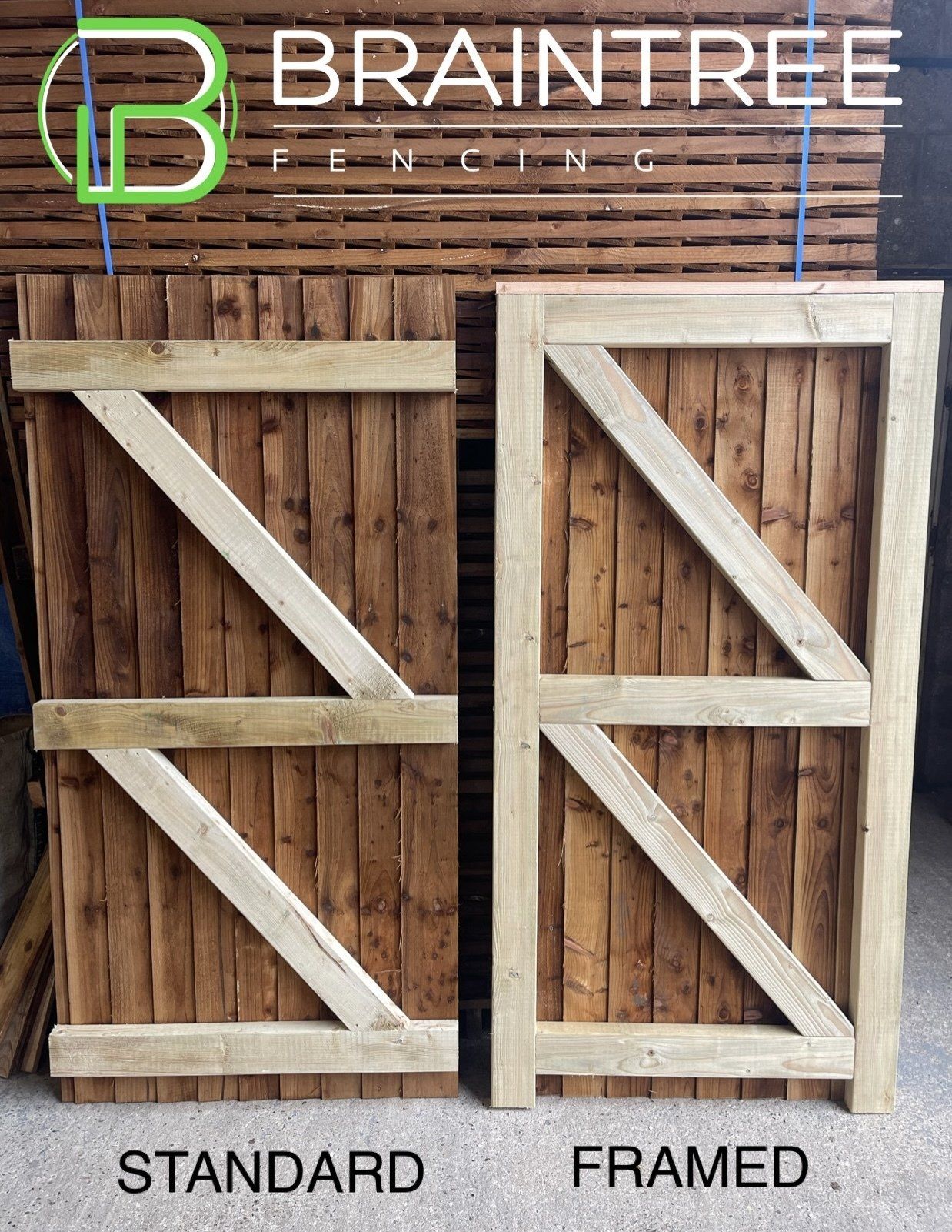 The Framed gate on the right of the picture is a bit more expensive but far superior in strength being fully framed. This also allows more options when adding different types of locks and ironwork.