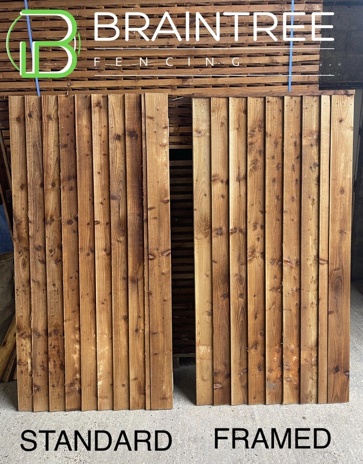Both are made from pressure treated 4" x 2" timber and pressure treated featheredge.